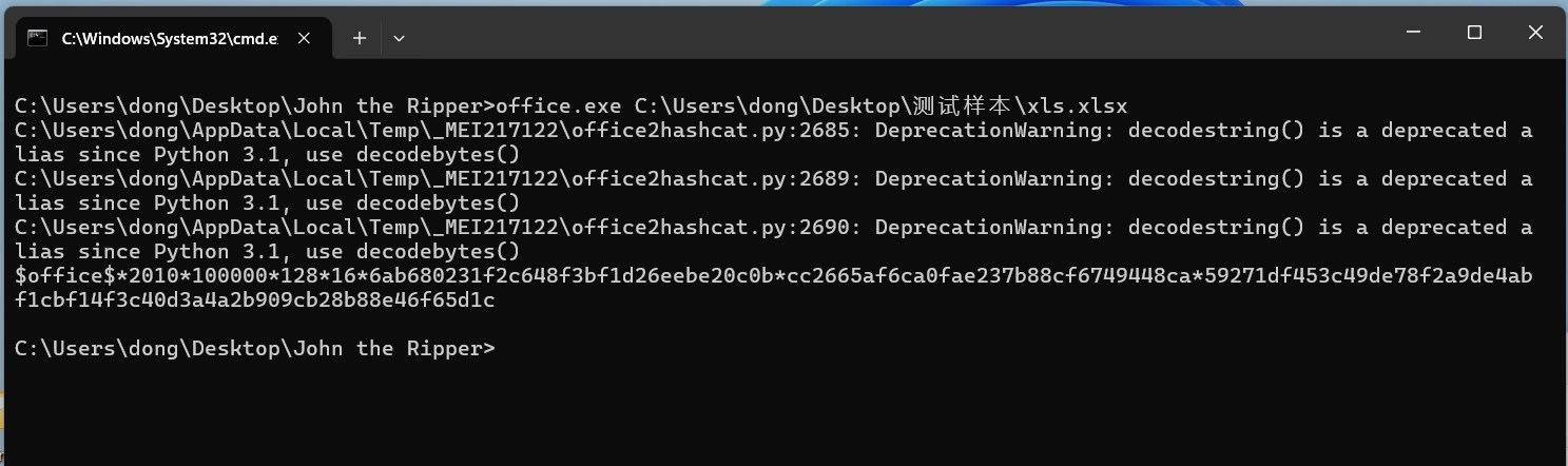 The following figure shows an example of using John the Ripper to extract office files (also applicable to docx/doc/xls/xlsx/pptx/ppt files) in John the Ripper Ripper's directory input