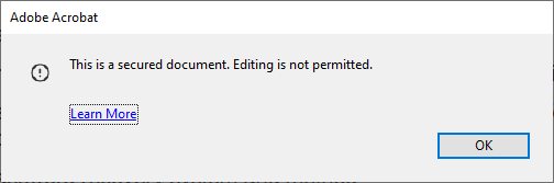 Let's start with unprotected files. In Adobe Reader, the Print button is usually disabled (grayed out), or you can select Test, but there is no Copy option in the pop-up menu. If you open a similar file in Adobe Acrobat and try to edit it, you will see the following notification: